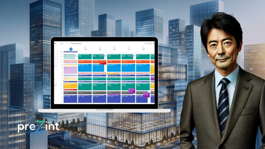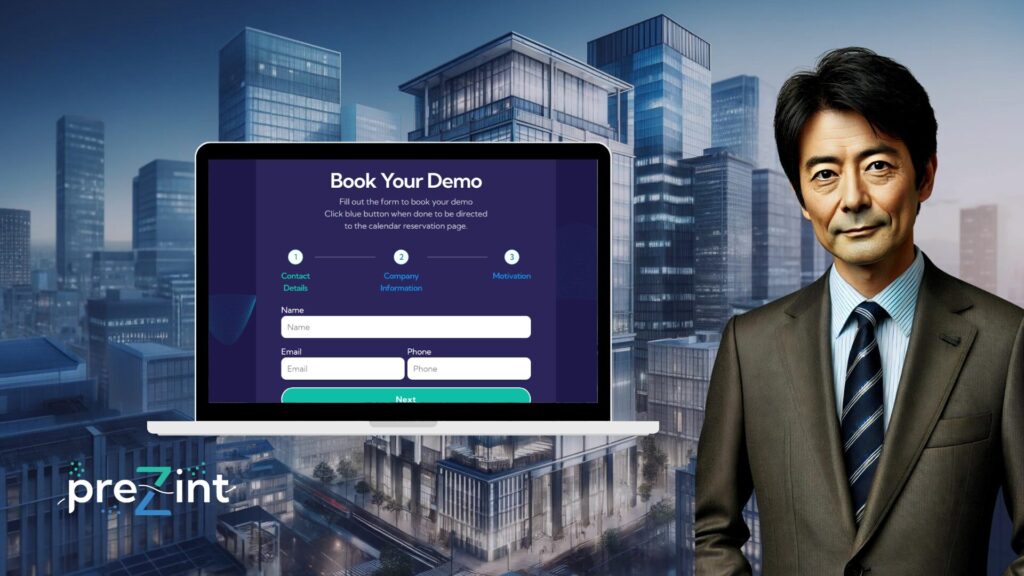 会社情報をご入力後、デモの日程をスケジュールしてください。preZintの担当者が貴社のオフィスにお伺いし、デモを行います。